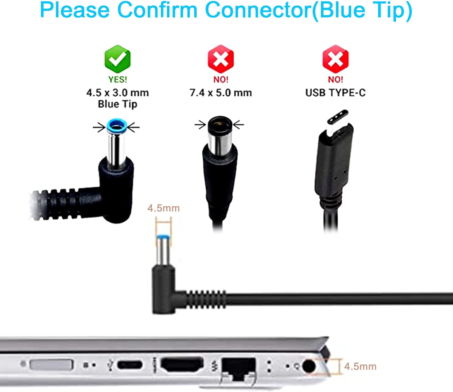 - Perfect Fit Blue Tip: Features the specific 4.5mm x 3.0mm connector (Blue Tip with central pin) for a secure, wiggle-free connection.